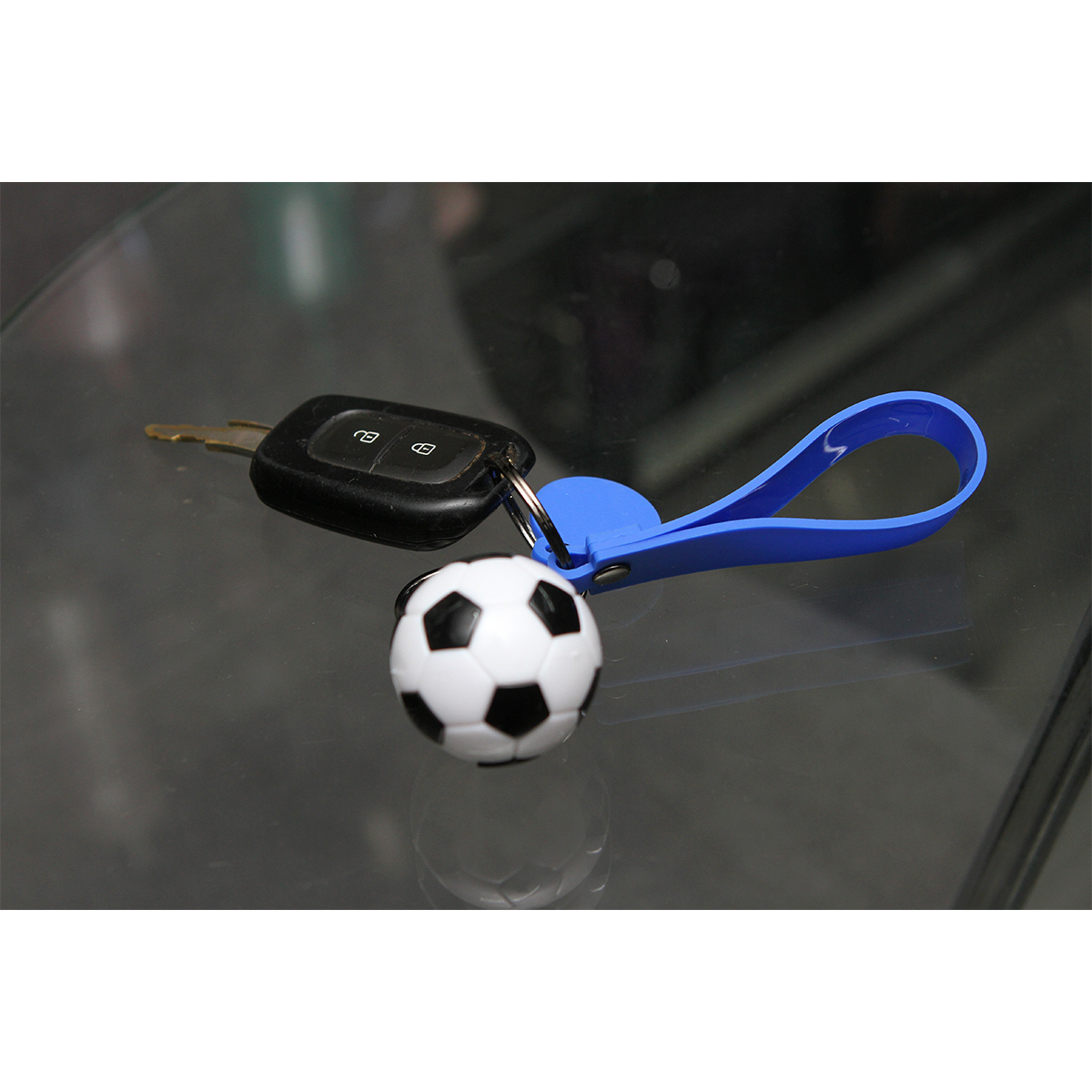 Llavero Hythe. - Llavero fabricado en plástico PVC con diseño de balón de fútbol. resistente, ligero y perfecto para fans de este deporte. Ideal para mochilas, llaves o como detalle promocional.