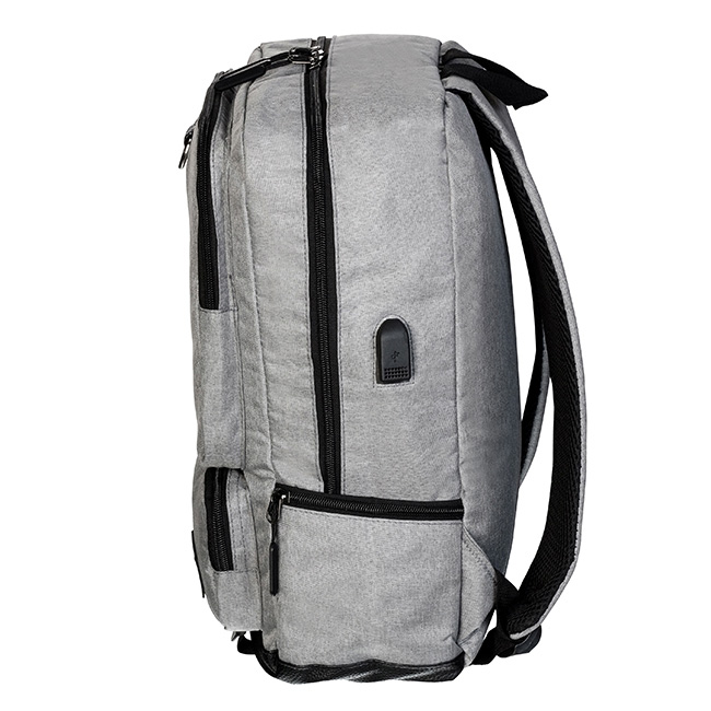Salida laterial para USB.Dos amplios bolsos con cierre en zipper.Detalle superior con argolla.Etiqueta inferior para personalizar.Base en terminado curpiel.Bolsillos laterales con cierre.Correas ajsutables y acojinadas.Compartimiento interior para laptop.